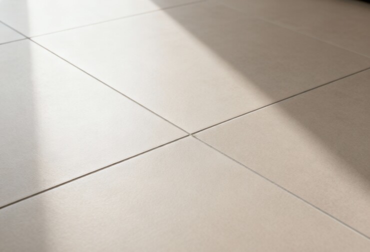 Le carrelage extra fin est souvent disponible en grand format (60x60 cm, 80x80 cm, voire plus). Ces grands formats sont généralement rectifiés, ce qui signifie que les bords sont coupés au laser après cuisson pour garantir des dimensions parfaites et permettre des joints très fins (2 mm minimum). Les bords rectifiés facilitent l'alignement lors de la pose.